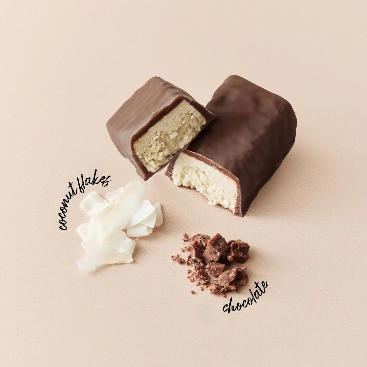 Notre barre suisse végane crémeuse à la noix de coco est fourrée d'un cœur parfumé à la noix de coco, composé de flocons de noix de coco frais et de crème de noix de coco, et se marie parfaitement avec notre onctueux chocolat noir suisse.
