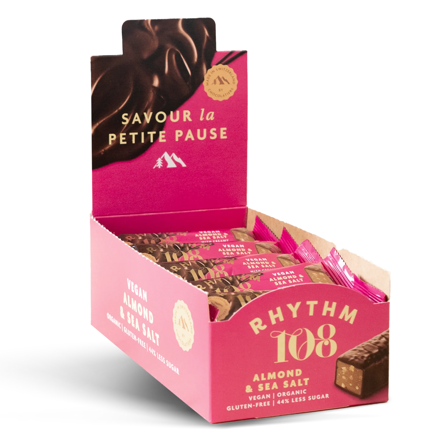 Rhythm108 - Swiss Vegan Almonds and Sea Salt chocolate Bar 33g